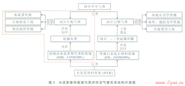 環(huán)空氣竄是幾乎所有天然氣井固井都存在的一個(gè)潛在問題,輕則導(dǎo)致井口環(huán)空帶壓,重則發(fā)生不可控井噴事故,嚴(yán)重影響油氣井的固井質(zhì)量和安全[1]。準(zhǔn)確預(yù)測(cè)水泥漿凝結(jié)過程中的氣竄潛在風(fēng)險(xiǎn)是有效預(yù)防環(huán)空氣竄現(xiàn)象的關(guān)鍵技術(shù)?,F(xiàn)有水泥漿防氣竄能力評(píng)價(jià)預(yù)測(cè)方法主要考慮了水泥漿失水、膠凝過渡時(shí)間等性能[2-8],對(duì)井下地層、套管等相關(guān)特定工況影響氣竄的考慮較少,因此目前未能很好地解決環(huán)空氣竄問題。本文結(jié)合水泥漿塑性體積收縮是導(dǎo)致孔隙壓力下降的本質(zhì),分析了初凝前塑性態(tài)水泥漿體積收縮與孔隙壓力之間的量化關(guān)系,提出了固井早期氣竄問題的氣竄預(yù)測(cè)新方法。該方法較現(xiàn)有經(jīng)驗(yàn)公式法而言,可更為