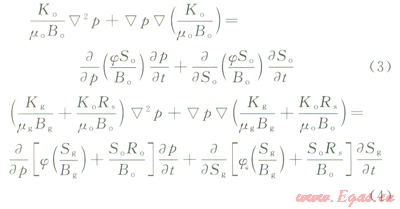 上述方程組中,如果不考慮毛細(xì)管力的影響(即po=pg),展開方程(1)和(2)得到: