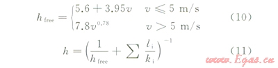 混凝土結(jié)構(gòu)在澆筑期附有模板,筆者采用等效熱對(duì)流系數(shù)的方法來(lái)考慮模板對(duì)溫度場(chǎng)的影響,混凝土的等效熱對(duì)流系數(shù)采用下式計(jì)算[16]: