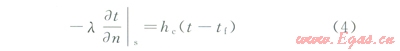 式中tf為空氣溫度,℃;hc為固體邊界面與流體之間的熱對(duì)流系數(shù)。
