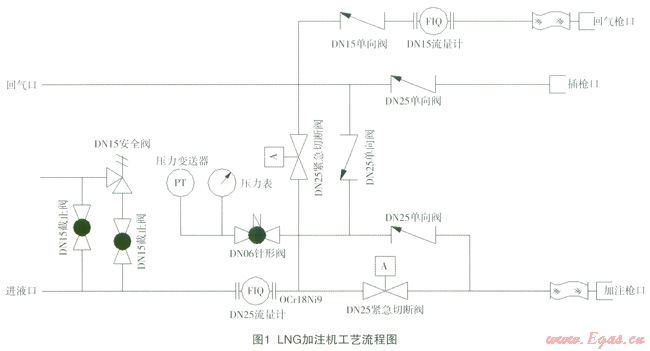 現(xiàn)代化的液化天然氣(LNG)加注機設備一般由電控系統(tǒng)、質(zhì)量流量計、管路系統(tǒng)3部分組成。LNG加注機具有新穎的人機操作界面、可靠的IC卡收費及結(jié)算等先進功能,以及有關網(wǎng)絡化管理的標準接口。在電氣控制上都采用了防爆結(jié)構(gòu),符合國家防爆檢驗機關的相關要求。