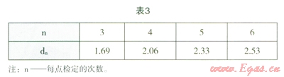 式中,Emax和Emin分別為規(guī)定測量點下,示值相對誤差的最大值和最小值,dn為極差系數(shù),見表3。