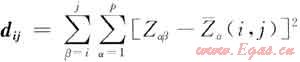 進(jìn)一步將測(cè)井信息作為變量進(jìn)行有序樣品分割并進(jìn)行測(cè)井相自動(dòng)分層,方法按多變量離差值進(jìn)行最優(yōu)分割統(tǒng)計(jì),要求各分層內(nèi)部樣本之間差異最小,各層段間差異最大。計(jì)算樣品段變差矩陣dij,其中Zαβ為樣本觀測(cè)值,
