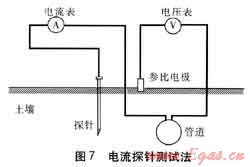 雜散電流探針測試法及其評價準(zhǔn)則是基于10年以上的工作經(jīng)驗而制訂的,可用于陰極保護(hù)管道雜散電流測試,但電流測試中易受到陰極保護(hù)電流等影響,儀器測試精度也有待提高,目前在國內(nèi)還沒有應(yīng)用實例。