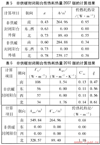 由式(2)與式(7)的比較可知:式(7)中tn取18℃;2010版中太陽輻射修正系數由較精確的計算得出;2010版中非供暖封閉陽臺的傳熱耗熱量不再像2007版那樣將墻與窗(門)分開計算。