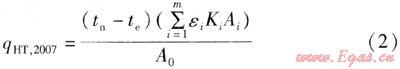 2007版中單位建筑面積通過圍護結構的傳熱耗熱量qHT,2007,的計算式為: