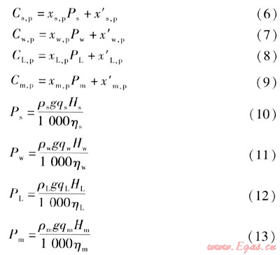 式中Cs,p、Cw,p、CL,p、Cm,p——海水泵、工質(zhì)泵、溶液泵、中介水泵的價(jià)格,元