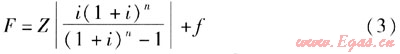 費(fèi)用年值F的計(jì)算式為: