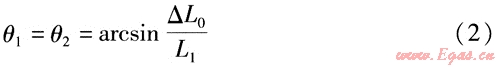 式中θ1、θ2——鉸鏈波紋管補(bǔ)償器S1、S2對(duì)應(yīng)的角位移,(°)