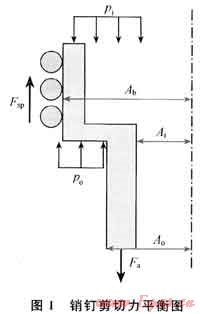 1) 對于第一種工況,封隔器坐封完成后,繼續(xù)增壓使伸縮短接剪斷銷釘,伸縮短接進入工作狀態(tài)。銷釘受力情況如圖1所示,剪斷銷釘所需要的載荷(Fsp)為[6]: