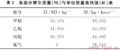 根據(jù)式(2)可以求得單位質(zhì)量高熱值(Hm)為55.058MJ/kg。