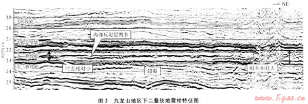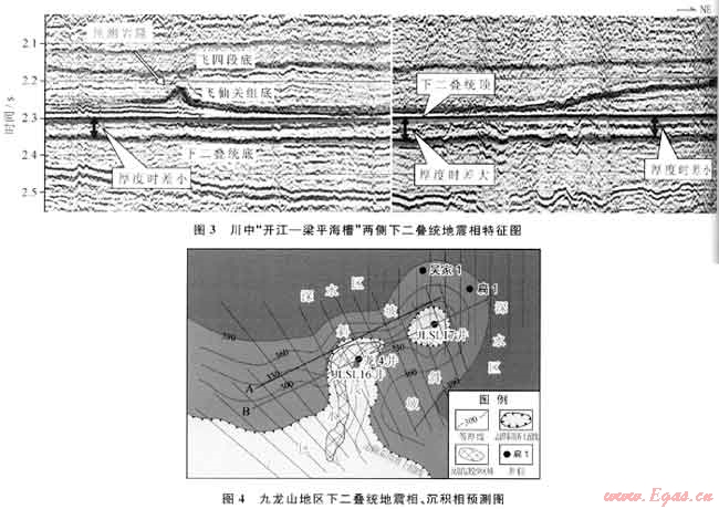 川西九龍山地區(qū)下二疊統(tǒng)棲霞組、茅口組為典型的碳酸鹽緩坡沉積環(huán)境,沉積環(huán)境主要受下伏志留系相對淺水和深水古環(huán)境的控制。探索性地采用地震相與沉積相的綜合解釋技術,預測高能灘發(fā)育的有利區(qū)域。通過地震相分析,下二疊統(tǒng)內部地震反射時間厚度異常增加,反射同相軸增多,底界明顯超覆于志留系上,3種不同的地震相特征表明下二疊統(tǒng)為志留系殘余古高地繼承性沉積,古地貌特征決定了本區(qū)高能灘的有利發(fā)育區(qū)。利用3種地震相特征綜合分析,預測了高能灘發(fā)育的有利區(qū)域,經實鉆證實,地震相與沉積相分析方法能提高下二疊統(tǒng)高能灘儲層的鉆探成功率。