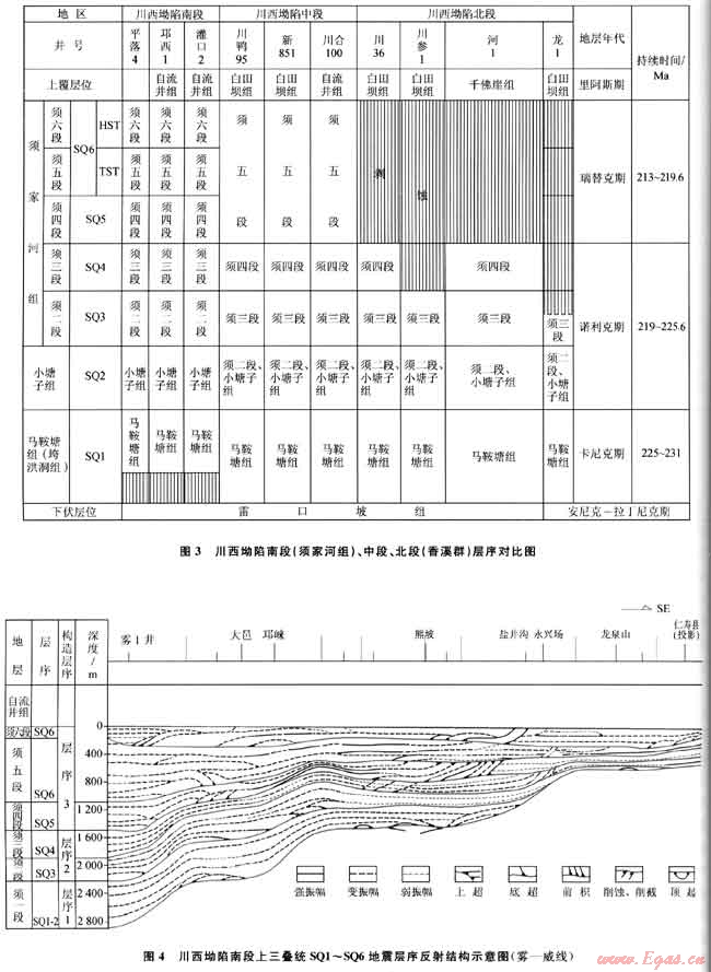 筆者應(yīng)用層序地層觀點(diǎn),采用地震、鉆井、測井、井震結(jié)合及地層、古生物、年代地層資料再次闡述了上三疊統(tǒng)層序地層劃分的新方案[5]。