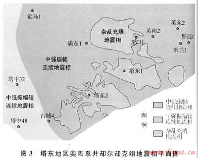 通過地震標定表明,卻爾卻克組深水盆地相沉積以中強振幅、中等連續(xù)地震相為特征,濁積相以雜亂充填地震相為主要特征。地震相追蹤發(fā)現(xiàn)(圖3),東南部的塔東1~塔東2井區(qū)以雜亂充填地震相為主,烴源巖不發(fā)育,與鉆井吻合。東部的米蘭1、羅西1井區(qū)中強振幅、中等連續(xù)地震相發(fā)育,烴源巖厚度大。近期鉆探的古城4井卻爾卻克組為斜坡 盆地沉積[12],缺少濁積砂巖,為中強振幅較連續(xù)地震相,鉆探證實也有較好的烴源巖發(fā)育。