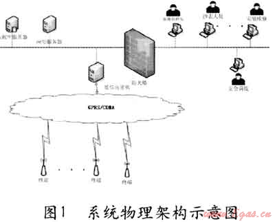 根據(jù)公司對網(wǎng)絡(luò)安全的特殊要求,采用GPRS/CDMA專線,實現(xiàn)采集終端和服務(wù)器平臺之間采用端到端加密,避免信息在整個傳輸過程中出現(xiàn)泄漏的可能,兩者通過防火墻進(jìn)行隔離,并在防火墻上進(jìn)行IP地址和端口過濾。