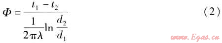 式中Φ——單位長(zhǎng)度管道的熱損失,W/m