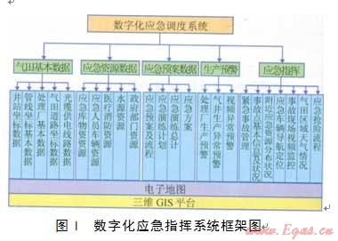 系統(tǒng)總體架構由5大部分組成,分別為:氣田基本數(shù)據(jù)、應急資源數(shù)據(jù)、應急預案數(shù)據(jù)、生產(chǎn)預警和應急指揮。其結構如圖l所示。