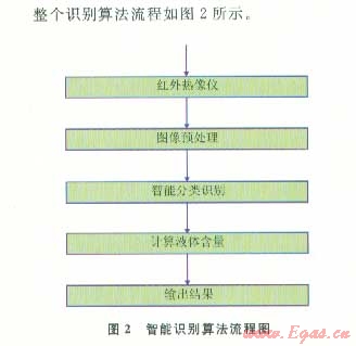 紅外熱像儀采集的圖像首先使用圖像預(yù)處理算法(包括中值濾波、目標分割等)將圖像中的噪聲和背景信息去掉。被預(yù)處理后的圖像只保留了含有溫度梯度變化的部分目標圖像。使用智能識別算法對圖像進行識別,計算出液體的含量。