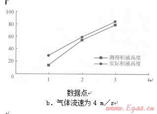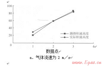 圖4不同氣體流速下實際積液高度與測得積液高度的對比圖