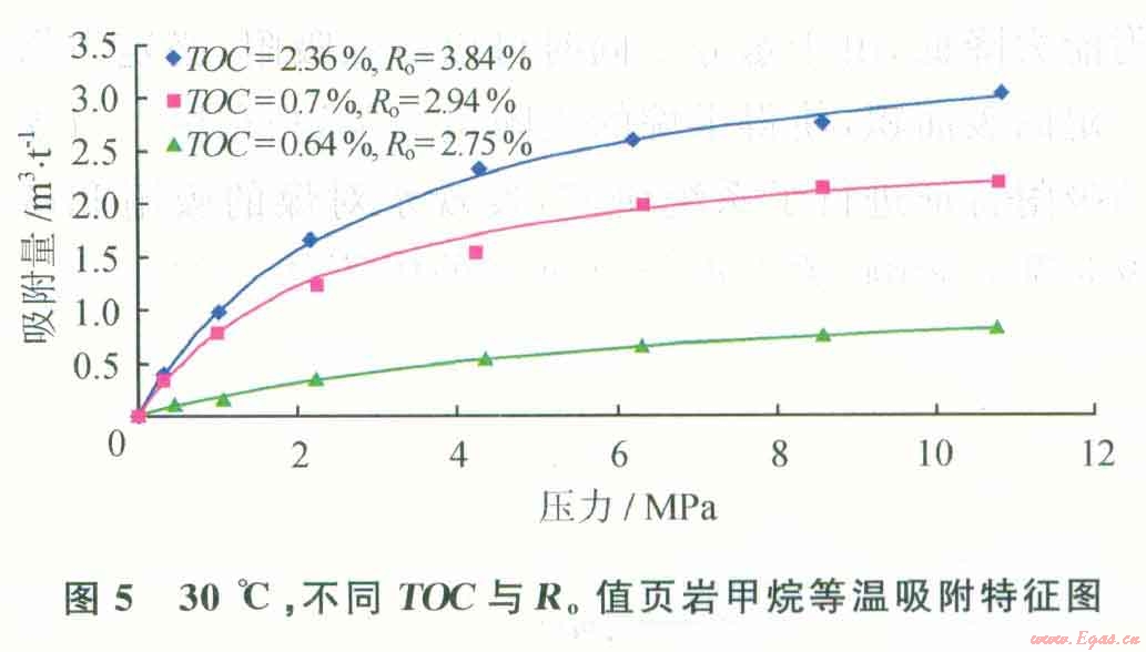 從以上的分析可以知道,TOC與R。共同影響著頁巖的吸附能力。