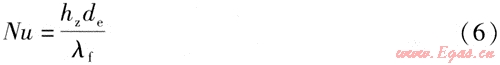煙氣對流凝結換熱努塞爾數(shù)Nu為:
