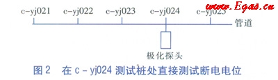 a.?dāng)嗟?/span>c-yj024測試樁的兩組犧牲陽極,等待管道完全去極化,即去除犧牲陽極對c-yj024測試樁處管道的影響,使c-yj024測試樁相當(dāng)于管道任意點(diǎn)的直接測試樁。