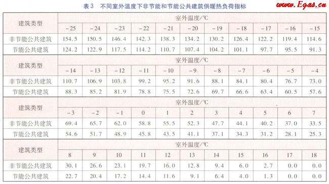 由以上數(shù)據(jù)計(jì)算出不同室外溫度(室外溫度取5整數(shù))下,該公共建筑在非節(jié)能和節(jié)能狀態(tài)下的供暖熱負(fù)荷指標(biāo),計(jì)算結(jié)果見表3。