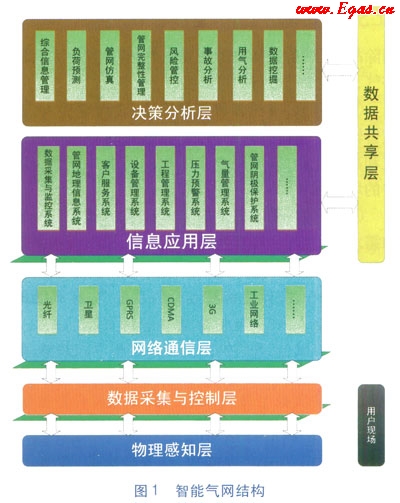 智能氣網(wǎng)是建立在穩(wěn)定可靠、快速高效通信網(wǎng)絡(luò)基礎(chǔ)之上,通過先進(jìn)的傳感和測(cè)量技術(shù)、先進(jìn)的設(shè)備制造和施工技術(shù)、先進(jìn)的信息技術(shù)、管網(wǎng)控制技術(shù)以及先進(jìn)的決策支持系統(tǒng)技術(shù)的應(yīng)用,實(shí)現(xiàn)天然氣在生產(chǎn)、儲(chǔ)存、輸配和使用過程中數(shù)字化管理、智能化決策,優(yōu)化資源配置,保證實(shí)現(xiàn)天然氣管網(wǎng)可靠、安全、優(yōu)質(zhì)、經(jīng)濟(jì)、高效、環(huán)境友好和使用安全的目標(biāo)。