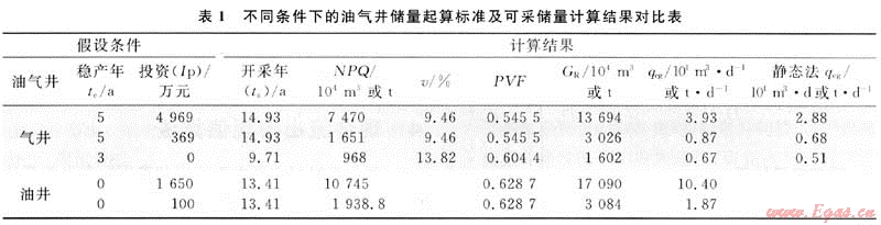 以已獲油氣井或新鉆井為對象,考查其滿足投入、產出盈虧平衡的產能條件。