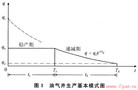 油氣井開采一般都要求有一段時間的穩(wěn)產期(Te),然后再進入遞減階段生產(圖1),而穩(wěn)產期的平均日產量(qe),就是本文所指的儲量起算標準產量。