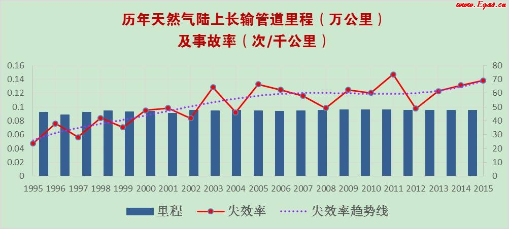 2006—2015年,管道總體失效率穩(wěn)中有降(圖15、16)。