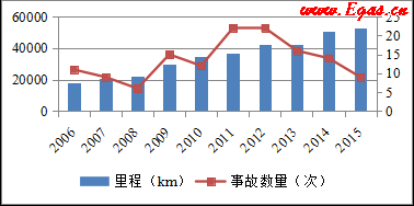 截至2015年6月,中國石油天然氣與管道分公司所轄5家地區(qū)公司油氣長輸管道總里程5.3×104 km。