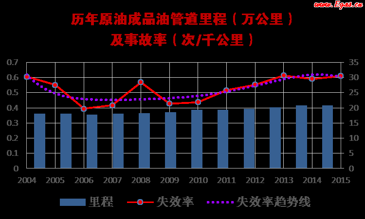 原油、天然氣管道失效原因按比例高低均分別為:內(nèi)腐蝕、第三方破壞和外腐蝕。其中,原油管道失效原因占比分別為21%、20%、16%;天然氣管道失效原因占比分別為53%、15%、12%。