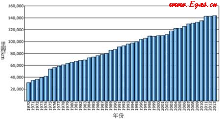 截至2013年,加拿大阿爾伯特能源與公用事業(yè)委員會(AER)管理的油氣管網(wǎng)總長11.6×104km,其中天然氣管道6.4×104km,原油管道3.7×104km,成品油管道1.5×104km。