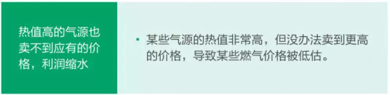 雖然以上氣源均滿足國家標準對于天然氣熱值的要求,但是不同的氣源生產(chǎn)的天然氣組份的差異導致的發(fā)熱值的差異明顯,而下游用戶沒有意識或者權(quán)利能選擇高熱值天然氣。