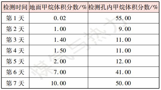 表1   E管道地面與孔內(nèi)甲烷體積分?jǐn)?shù)