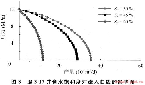 預(yù)測澀3-17井在不同地層含水飽和度時的流入曲線如圖3所示。