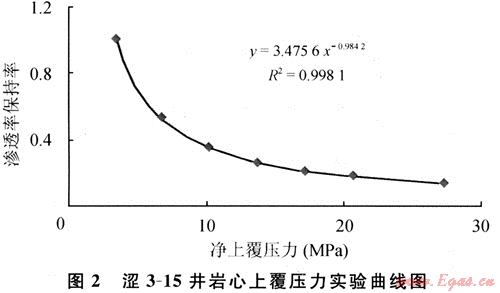 澀3-15井巖心上覆壓力實驗(圖2)表明,至氣藏廢棄時,儲層滲透率將降至原始值的1/5~1/2。