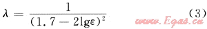 式(2)中段塞密度可取原油密度,段塞速度可取流體混合流速,因沖擊流處于水力粗糙區(qū),在該流態(tài)區(qū)內(nèi),λ僅與管壁相對(duì)粗糙度(ε)有關(guān),可用尼古拉茲公式求水力摩擦系數(shù),計(jì)算公式見(jiàn)式(3):