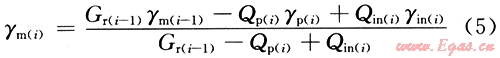 某一注采階段庫內(nèi)混合流體相對密度[γm(i)]的數(shù)學(xué)表達(dá)式為: