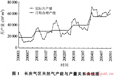 我國天然氣開發(fā)利用正處在發(fā)展的初期,產(chǎn)量和用氣量增長很快,但安全穩(wěn)定供氣的基礎(chǔ)設(shè)施尚不完善,利用上游氣田增加產(chǎn)量進(jìn)行調(diào)峰,成為這一階段的主要手段。如長慶氣區(qū)的目標(biāo)市場基本位于我國北方,四季溫差變化大,冬夏最為懸殊,主力氣田產(chǎn)量波動特別大。統(tǒng)計(jì)分析2000~2003年氣田生產(chǎn)情況,有以下突出的特點(diǎn);一是月產(chǎn)量曲線波動明顯,冬季出現(xiàn)明顯的高峰:二是調(diào)峰期提產(chǎn)幅度大,從2000~2003年,年均月產(chǎn)量與調(diào)峰期月產(chǎn)量比較,提產(chǎn)幅度分別為57%、31%,、42%和27%,相應(yīng)調(diào)峰氣量占年產(chǎn)量比例分別為19.6%、11.8%、14.4%和9.6%,調(diào)峰氣量比例逐漸下降的原因,主要是從2001年冬季開始,大港儲氣庫相繼建成并發(fā)揮調(diào)峰作用;三是調(diào)峰期的產(chǎn)量均在氣田合理生產(chǎn)能力之上運(yùn)行,而其他季節(jié)基本在合理生產(chǎn)能力下運(yùn)行(圖1)。