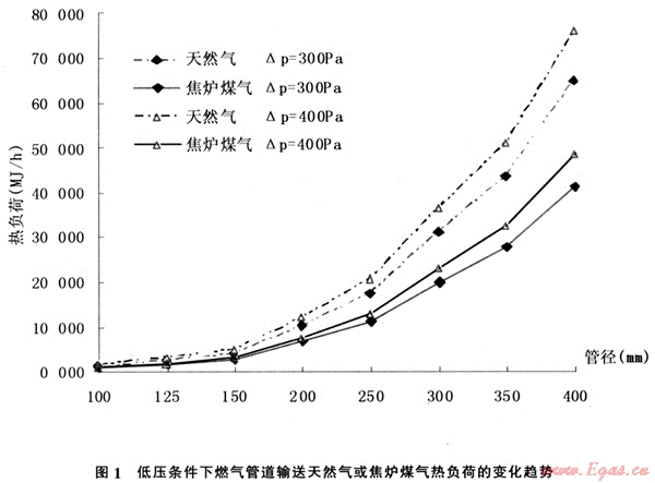 分別對于天然氣和焦爐煤氣而言,在相同管道長度條件下: