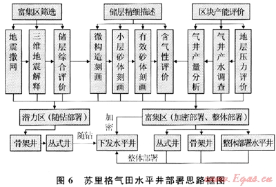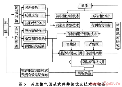 第三,依據(jù)區(qū)帶特征,開展針對(duì)性研究,進(jìn)一步落實(shí)富集區(qū):①蘇里格中區(qū)——將高精度二維地震和有限的三維地震資料相結(jié)合,預(yù)測(cè)砂巖厚度及含氣性;描述河道砂體展布范圍,刻畫有效儲(chǔ)層分布特征,進(jìn)行相對(duì)富集區(qū)篩選;②蘇里格東區(qū)——在分析開發(fā)井的基礎(chǔ)上,靜態(tài)與動(dòng)態(tài)結(jié)合,對(duì)盒8段、山1段和下古生界進(jìn)行再認(rèn)識(shí),上、下古生界綜合考慮,落實(shí)富集區(qū);③蘇里格氣田西區(qū)——深化地層水分布規(guī)律研究,綜合應(yīng)用地質(zhì)、測(cè)井、測(cè)試、地層水分析及生產(chǎn)動(dòng)態(tài)等資料,多學(xué)科交叉滲透,在統(tǒng)一的技術(shù)思路下對(duì)蘇里格氣田西區(qū)氣水關(guān)系進(jìn)行一體化研究,通過(guò)“避水找氣”,落實(shí)富集區(qū)。