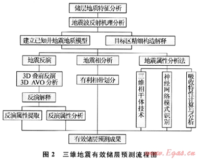 其次,重點(diǎn)區(qū)實(shí)施三維地震、強(qiáng)化儲(chǔ)層預(yù)測(cè)。在二維地震選區(qū)基礎(chǔ)上,優(yōu)選潛力區(qū)開展三維地震。充分利用三維資料信息量大、地質(zhì)內(nèi)涵豐富的優(yōu)勢(shì),以主河道帶預(yù)測(cè)為基礎(chǔ),以有效儲(chǔ)層預(yù)測(cè)為核心,以疊前技術(shù)為主,以疊后技術(shù)為輔;進(jìn)行主河道帶預(yù)測(cè)、儲(chǔ)層及含氣性預(yù)測(cè),并利用三維可視化手段對(duì)儲(chǔ)層及有效儲(chǔ)層進(jìn)行精細(xì)刻畫;最后通過(guò)綜合評(píng)價(jià)優(yōu)選高產(chǎn)富集分布區(qū)(圖2)。