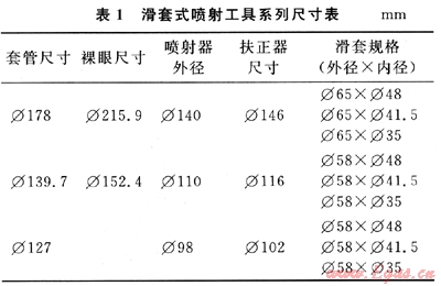 針對(duì)現(xiàn)場(chǎng)井況,目前已完成針對(duì)Φ127、Φ139.7、Φ178mm套管3種尺寸滑套式噴射器的研制,形成了系列化產(chǎn)品,具體尺寸和規(guī)范如表1所示。