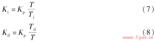 在上述離散化過程中,T必須足夠短才能保證采樣精度。為書寫方便,將e(fT)用e(f)表示,將式(4)、(5)代入式(2),化簡后可得離散的PID表達(dá)式為:
