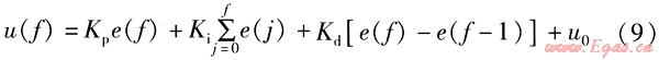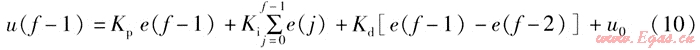 △u(f)=Kp[e(f)-e(f-1)]+Kie(f)+Kd[e(f)-2e(f-1)+e(f-2)] (11)