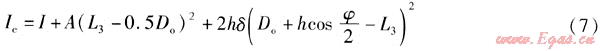 補強跨越管道截面慣性矩Ic的計算式為: