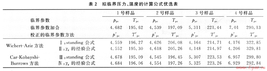 2.1 擬臨界參數(shù)的計(jì)算[4~5]