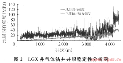 利用上述方法對LG地區(qū)已鉆井氣體鉆井條件下井眼穩(wěn)定性作了分析計算(圖2),對比各井分析結果可得出以下認識: